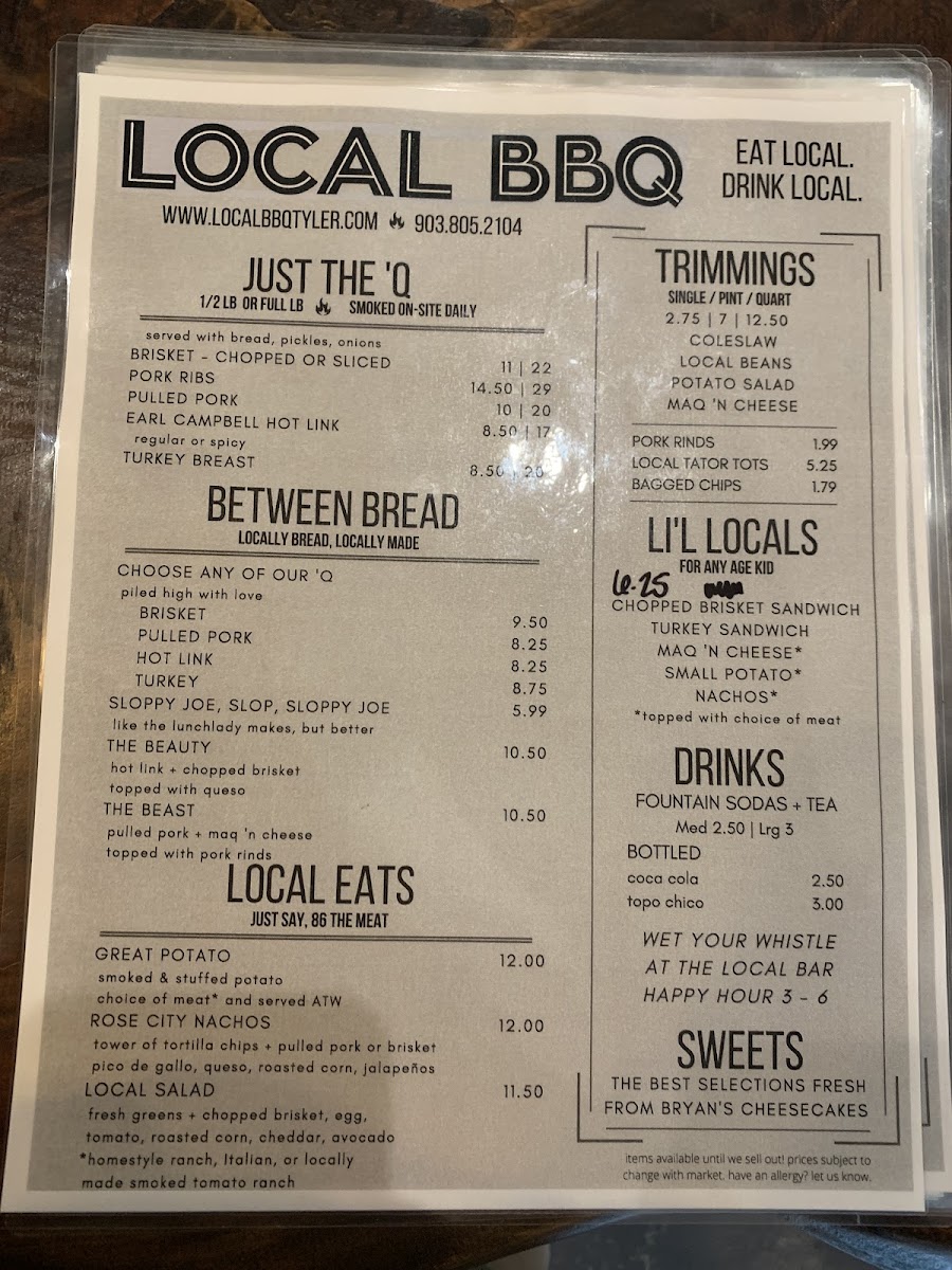 Welcome to Local BBQ, a delightful gem nestled in Tyler, TX, where the smoky aroma meets a vibrant atmosphere. This new BBQ spot has been making waves with customers raving about their mouthwatering dishes. Indulge in their brisket and turkey, both praised for their rich flavors and perfect smoke balance. For a lighter option, try the BBQ salad or the sprawling sampler that lets you experience a variety of delights.